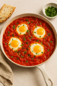 A vibrant, savory North African dish of eggs poached in a smoky, spiced tomato and pepper sauce. A stunning and delicious centerpiece for an Easter brunch.