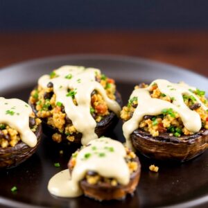 Dinner Party Stuffed Portobello Mushrooms with Creamy Cashew Sauce