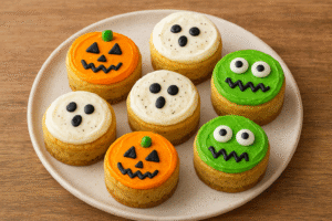 The easiest Halloween cheesecakes ever! Using pre-made cookie dough as the crust, these adorable mini desserts can be decorated like monster faces, pumpkins, or ghosts.